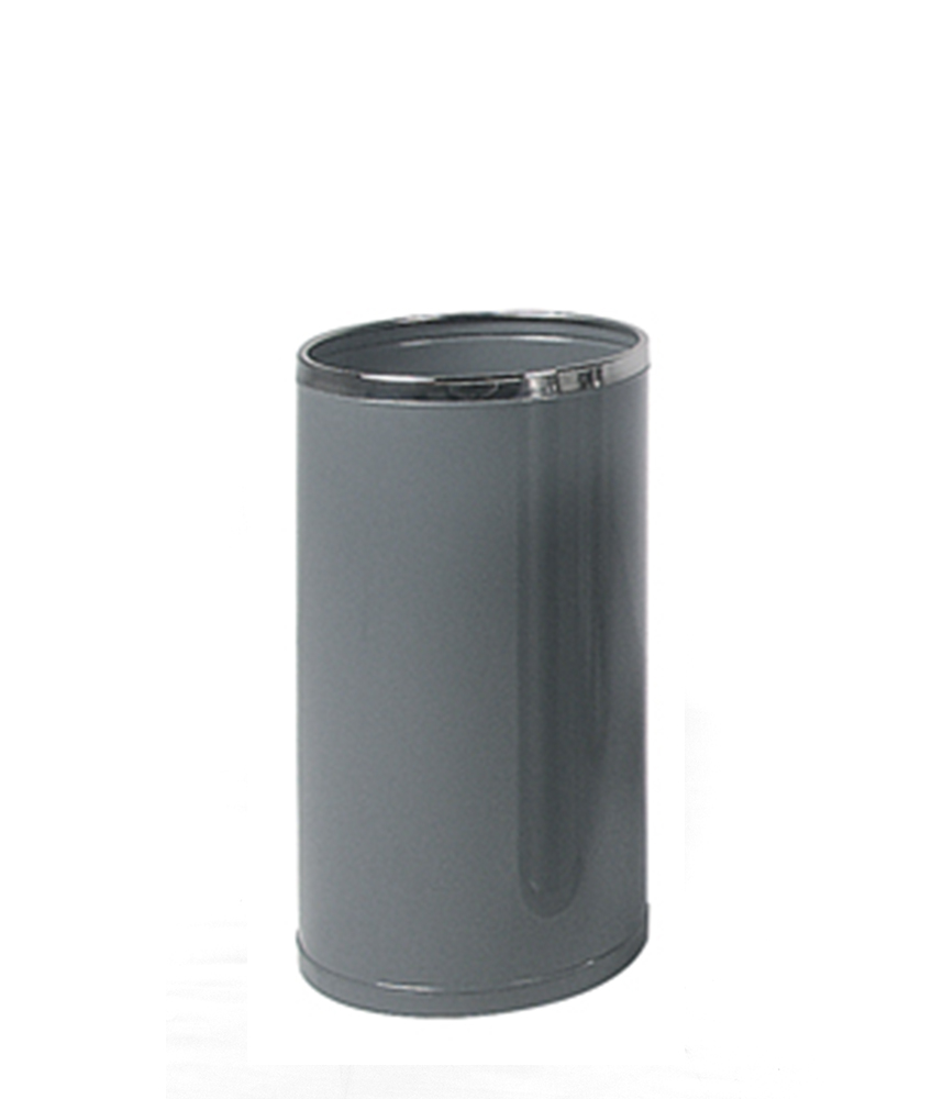 <p>Papeleira alta redonda em chapa de aço com pintura epoxy, e aro superior em aço inox.</p>