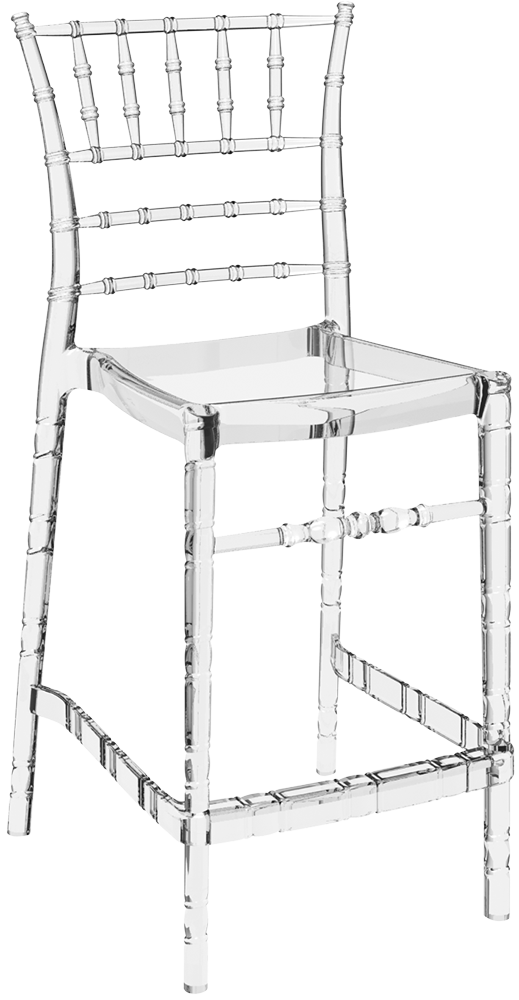 Cadeira de bar de casamento empilhável, para uso interno e externo em policarbonato transparente ou brilhante. <p>Resistente a riscos e aos raios UV.</p>