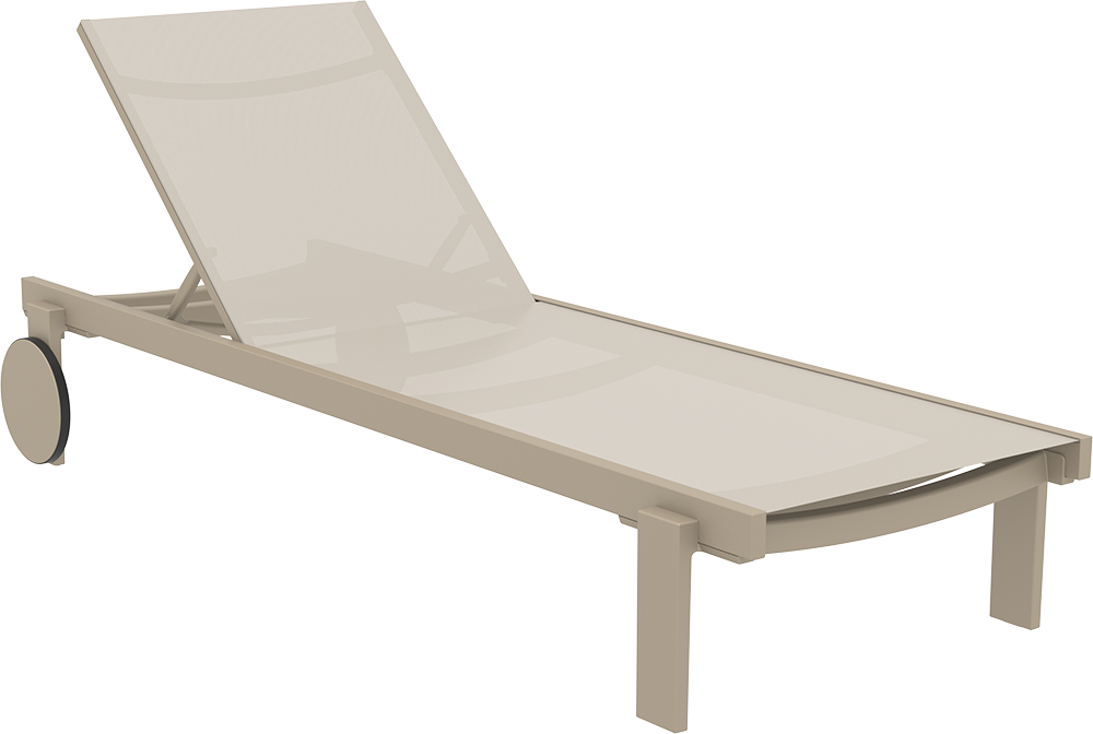 Espreguiçadeira 30707com pernas em resina reforçada com fibra de vidro combinada com estrutura em alumínio lacado. Capa em tecido sintético respirável e substituível, encosto reclinável em 5 posições, com pés antiderrapantes e rodas de borracha. Dois materiais combinados para tornar a espreguiçadeira muito resistente, funcional, leve e empilhável. Seu design minimalista e detalhes refinados evocam uma sensação de luxo, transformando qualquer espaço ao ar livre em um estilo retrô.
