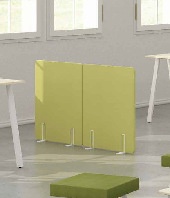 <strong>Painel </strong><p>• Melamina - Aglomerado de 19mm revestido a Melamina com Orla em PVC 2mm à cor da superfície do tampo. Cantos arredondados.</p><p>• Tecido - Aglomerado de 19mm revestido a espuma 60kg com 5mm espessura, revestido no exterior a tecido com remate BIT em pvc.</p><p><strong>Apoio ao solo</strong></p><p>• Sapatas|Suportes Metálicos fixos em Chapa 5mm espessura pintada a tinta em pó termoendurecível, com deposição entre 60 a 80 Microns.</p>