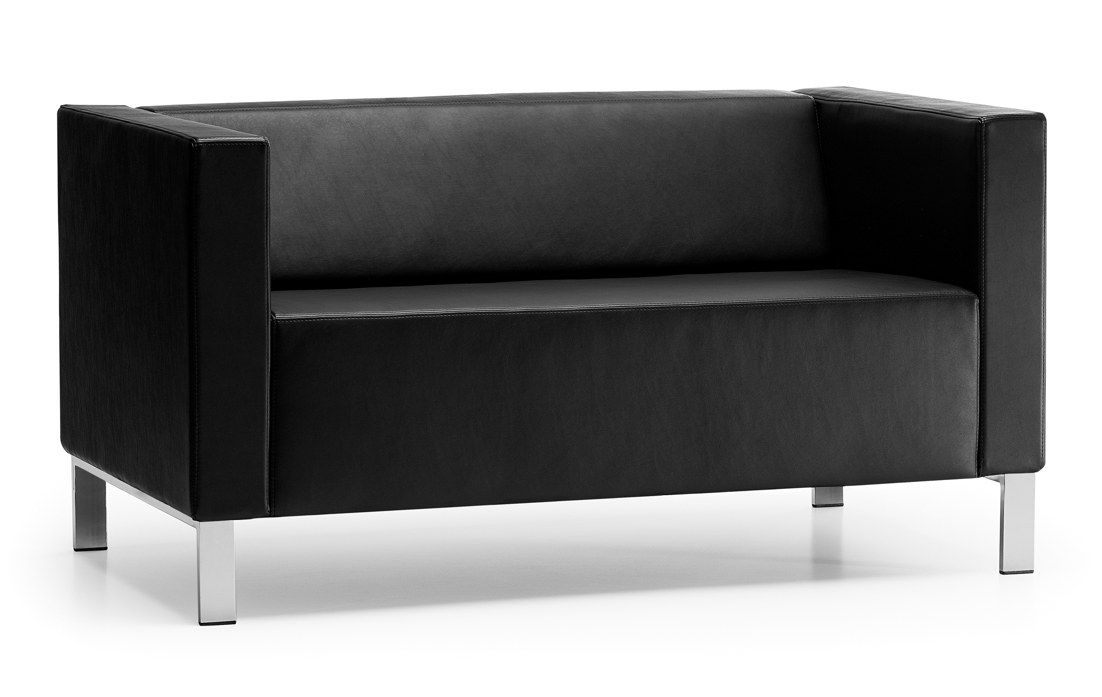 Sofá duplo. <p>Com braços. </p><p>Estrutura de suporte pintada a cinza RAL 9006.</p>