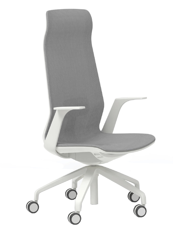 <strong>Costa</strong>: Alta. Rede preta. Suporte lombar regulável em altura.<br><strong>Assento</strong>: Rede preta ou cinza.<br><strong>Base: </strong>Alumínio pintado a preto ou branco.<br><strong>Mecanismo</strong>: Sincronizado. Regulação automática da tensão.<br><strong>Braços: </strong>Fixos. Topo em polipropileno preto.