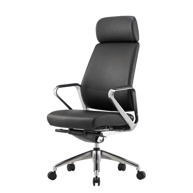 <strong>Costa</strong>: Alta. Espuma moldada. Revestida.<br><strong>Assento</strong>: Espuma moldada. Regulável em profundidade.<br><strong>Base</strong>: Alumínio polido.<br><strong>Mecanismo</strong>: Sincronizado. Bloqueio em 7 posições.<br><strong>Braços</strong>: Fixos. Alumínio polido. Topo revestido.<br><strong>Apoio de cabeça</strong>: Opcional.