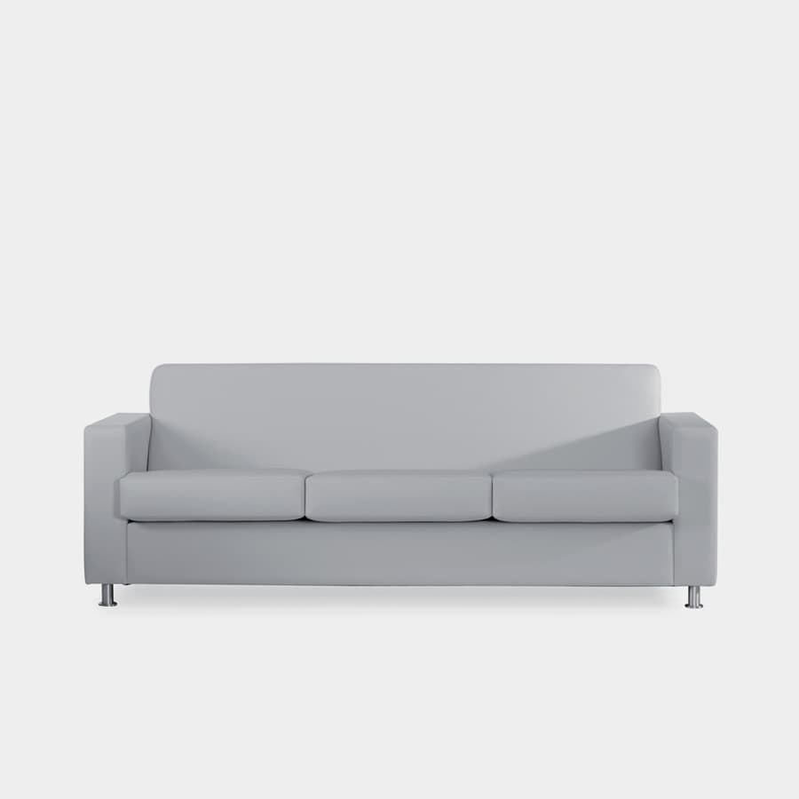 Sofá triplo com pés em alumínio. <p>Estrutura: interior em madeira, revestida a espuma de alta densidade. </p><p>Revestimento: Tecido ou pele sintética.</p><p> </p>