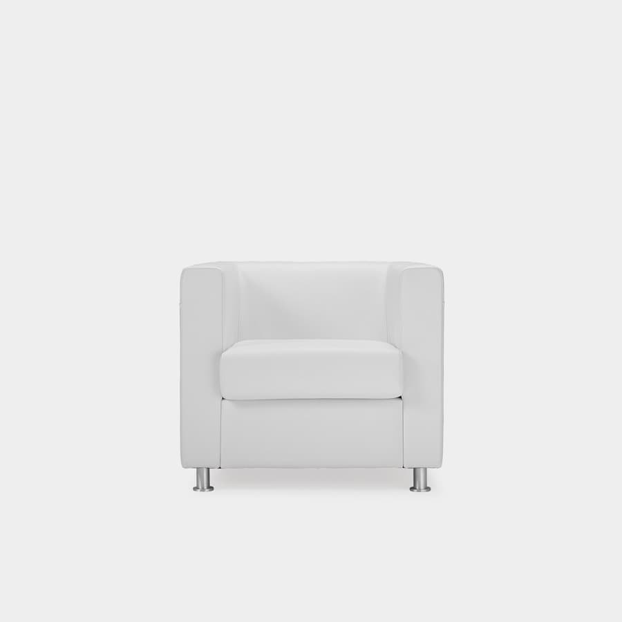 Sofá individual com pés em alumínio.<br><strong>Estrutura: </strong>interior em madeira, revestida a espuma de alta densidade.<br><strong>Revestimento: </strong>Tecido ou pele sintética.